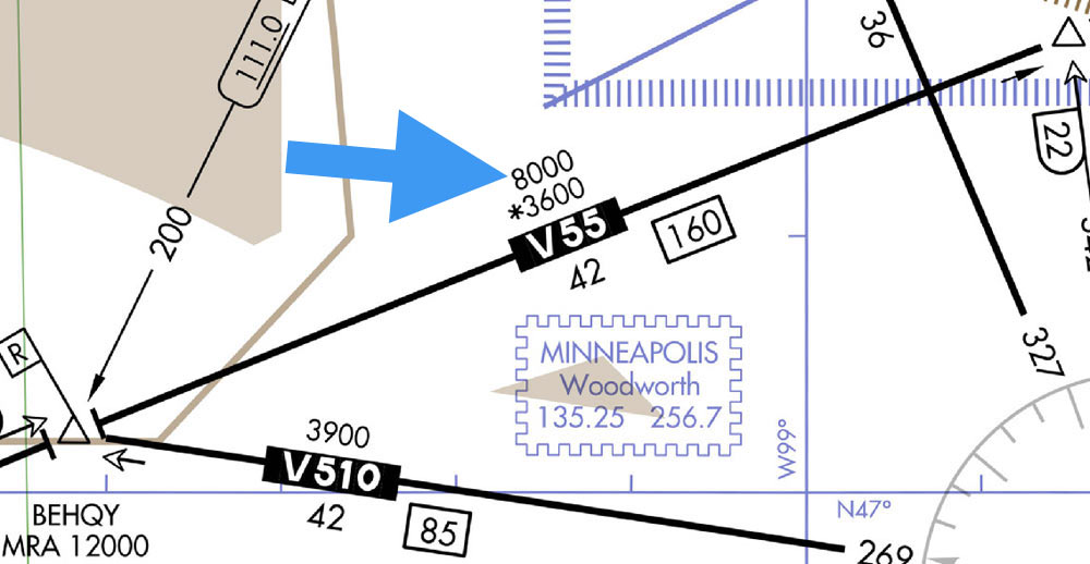 在一段 Victor 航路上,如果 MEA 是 8,000 ft,那你在该区间巡航高度至少不能低于 8,000 ft,否则可能失去导航信号或不足够避让障碍物。